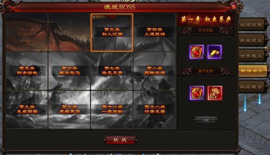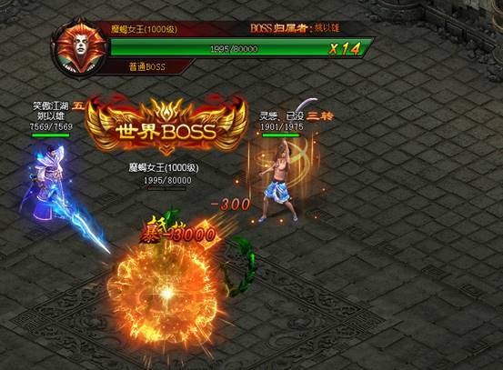 玩法简介:1.玩家每天能免费挑战5次世界BOSS,额外挑战需要元宝购买。